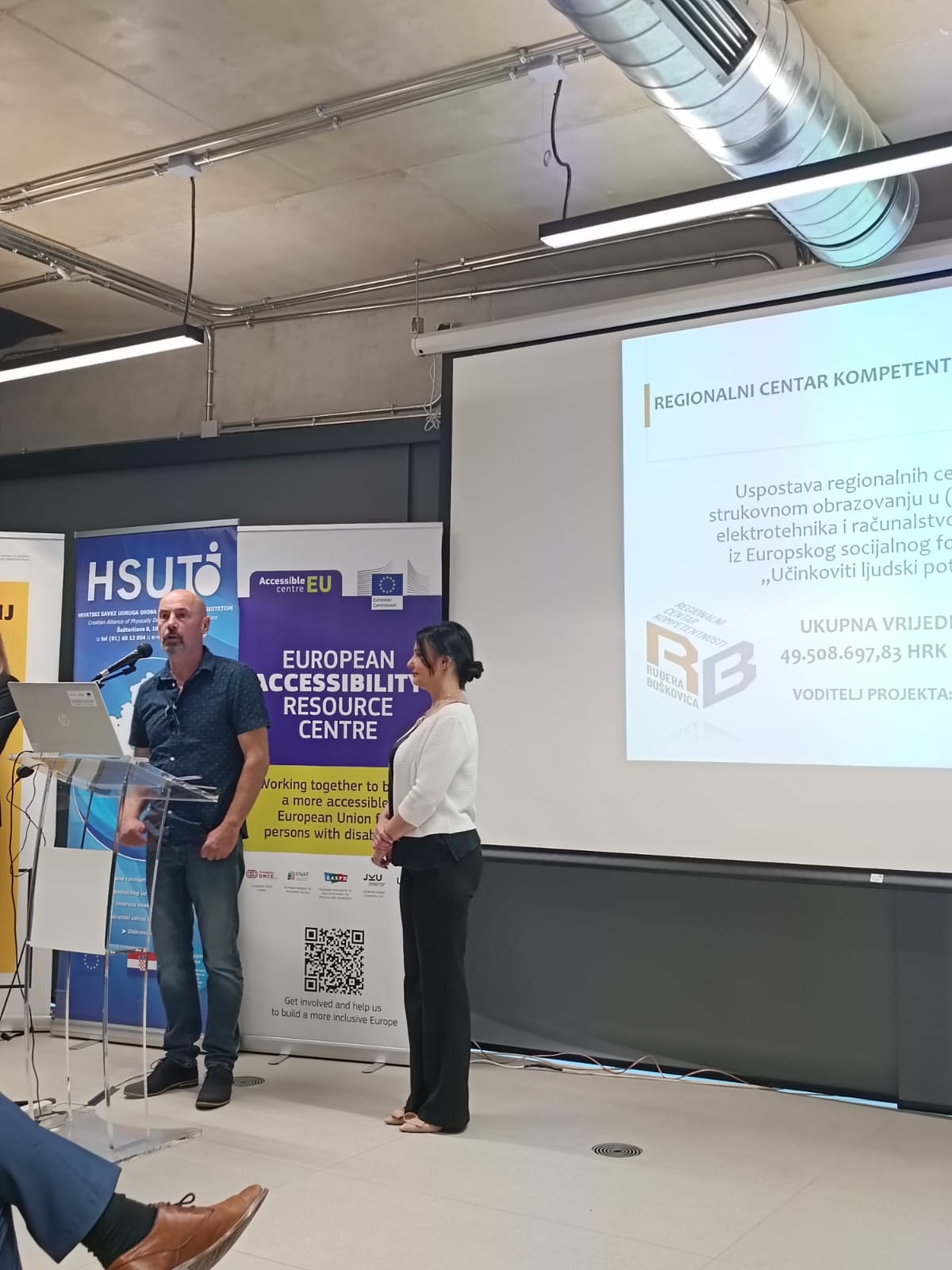Predsjednica Saveza Jozefina Kranjčec i stručna suradnica Marijana Borac predstavile su temu ”Važnost osiguranja pristupačnosti građevina i okoliša osobama s invaliditetom i smanjene pokretljivosti”. U svom izlaganju predstavile su aspekte pristupačnosti, članak 9. Konvencije UN o pravima osoba s invaliditetom, Tehnički propis o osiguranju pristupačnosti građevina osobama s invaliditetom i smanjene pokretljivosti, te primjere dobre i loše prakse u tom pogledu.