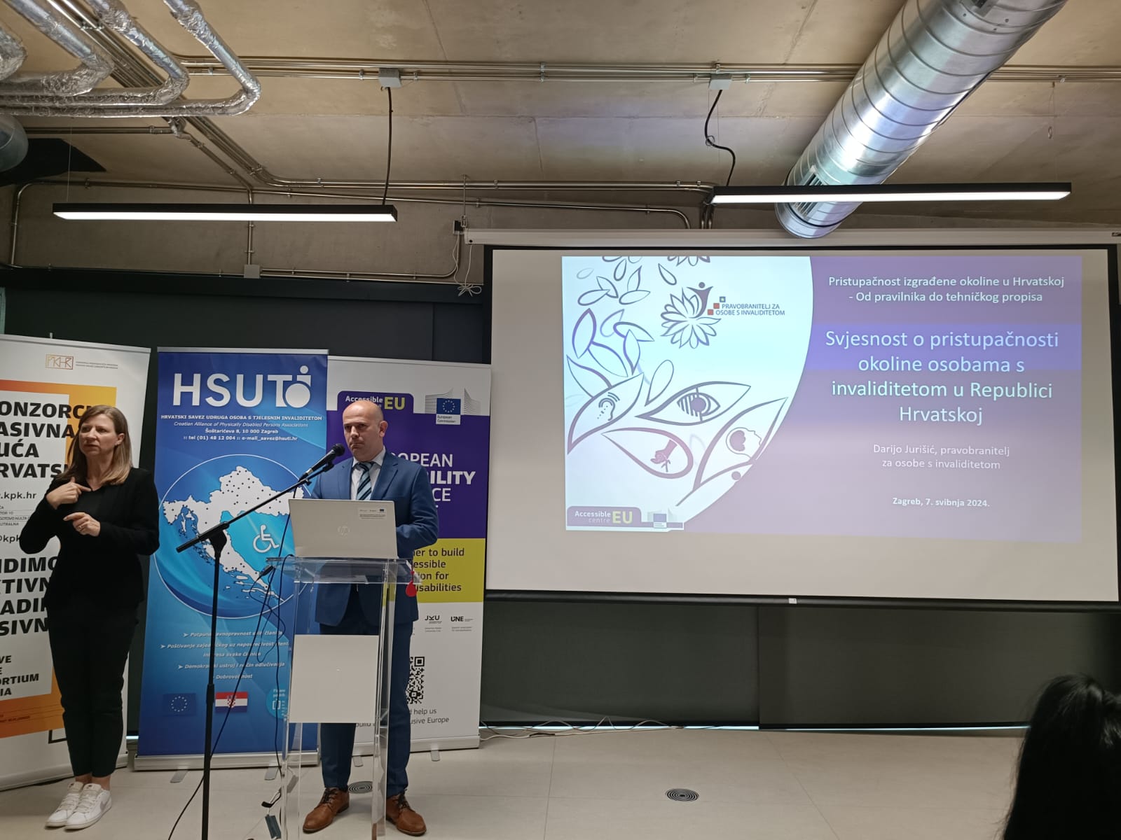 U organizaciji konzorcija AccessibleEU po prvi put u Hrvatskoj je 7. svibnja 2024. godine održana središnja nacionalna godišnja konferencija s međunarodnim sudjelovanjem na temu pristupačnosti unutarnjih i vanjskih prostora izgrađene okoline „Pristupačnost izgrađene okoline u Hrvatskoj – Od pravilnika do tehničkog propisa“.