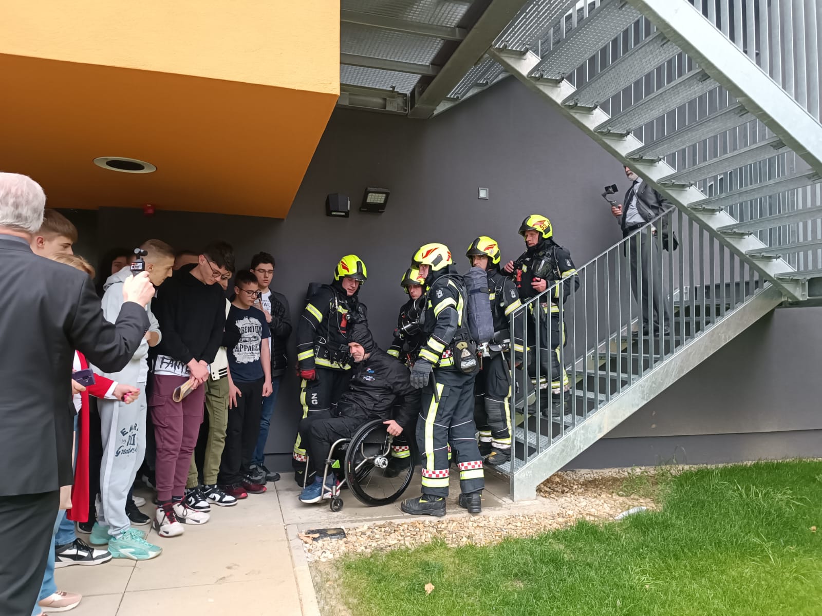 Nakon konferencije održana je pokazna vježba simulacije evakuacije osobe u invalidskim kolicima koja je organizirana u suradnji s Civilnom zaštitom i sudjelovanje pripadnika Javne vatrogasne postrojbe Grada Zagreba.