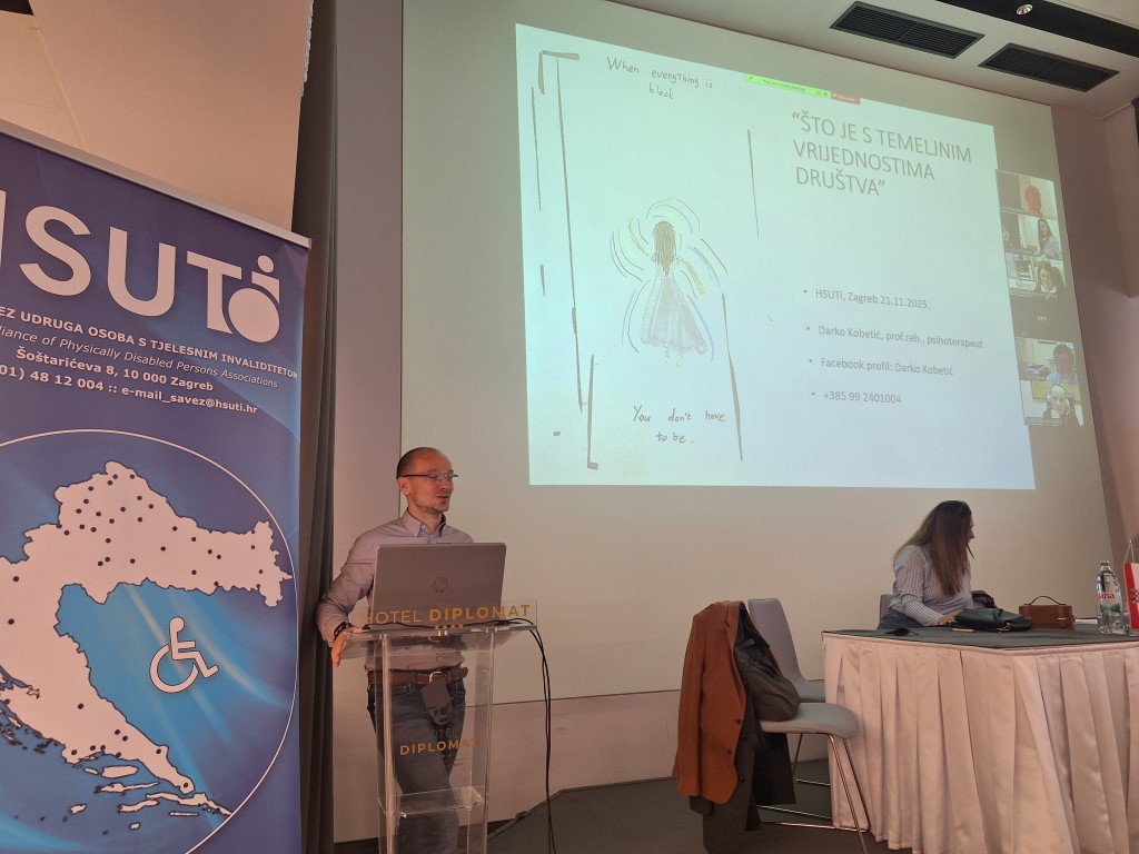 U organizaciji Hrvatskog saveza udruga osoba s tjelesnim invaliditetom dana 21.11.2025. u hotelu Diplomat u Zagrebu održano je informativno i poticajno predavanje na temu „Što je s temeljnim vrijednostima društva?“, namijenjeno predstavnicima udruga članica Saveza.
